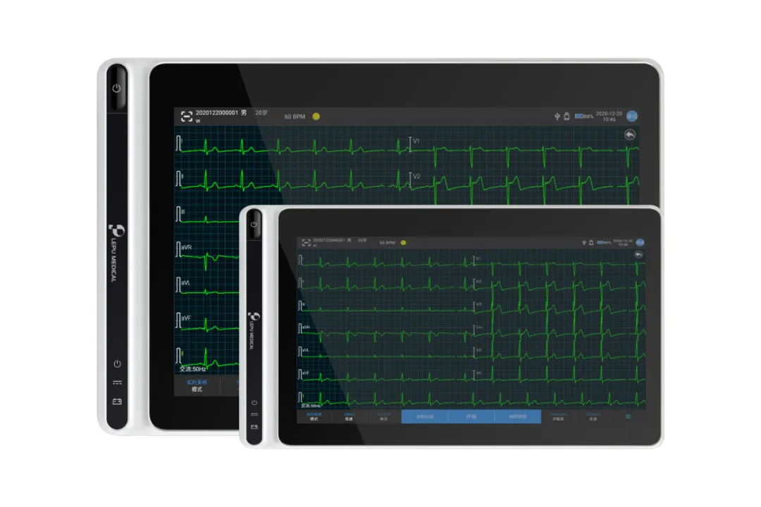 乐普便携式AI心电图机以其卓越的性能和便捷的操作,为医院提供了高质量的静态心电诊断支持,还可助力心电一张网项目建设。设备具有高分辨率的显示屏幕,能够清晰呈现心电波形,方便医护人员快速准确地进行波形分析和诊断。同时,搭载了先进的AI-ECG心电分析辅助技术,能够自动识别常见的心电图异常情况,并给出初步的诊断建议,大大提高了诊断效率和准确性。
