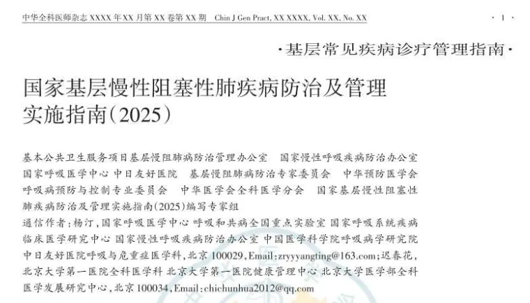 近日,《国家基层慢性阻塞性肺疾病防治及管理实施指南(2025)》(以下简称《指南》)正式发布,适用范围覆盖各类基层医疗卫生机构,包括社区卫生服务中心(站)、乡镇卫生院、村卫生室等参与慢阻肺病防治管理的相关工作者。